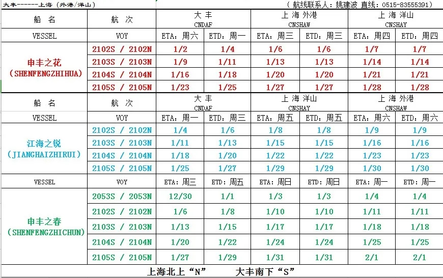 劃重點:滬鹽專線一月份船期