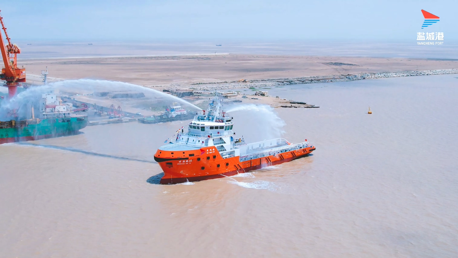 6月3日上午,鹽城港“黃海拖01”拖輪在隆重的“水門”儀式歡迎下,緩緩靠泊鹽城港濱海港區(qū)。這是這艘新購置船舶首次在鹽城港靠泊。