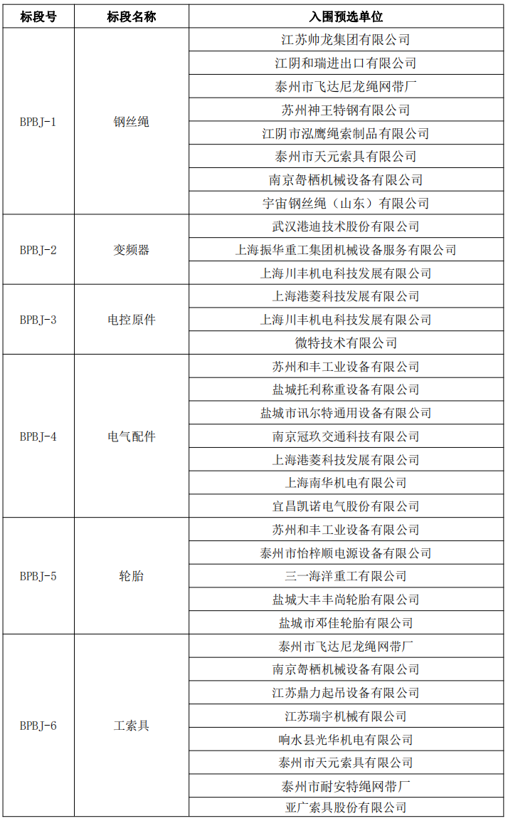 根據招標投標的有關法律、法規、規章和本項目招標文件的規定,2023年港口設備維修材料備品備件合格供應商預選名錄、2023年港口設備維修服務供應商預選名錄開標和評標工作已經結束,入圍的預選單位已經確定。現將入圍的預選單位名單公示如下:
