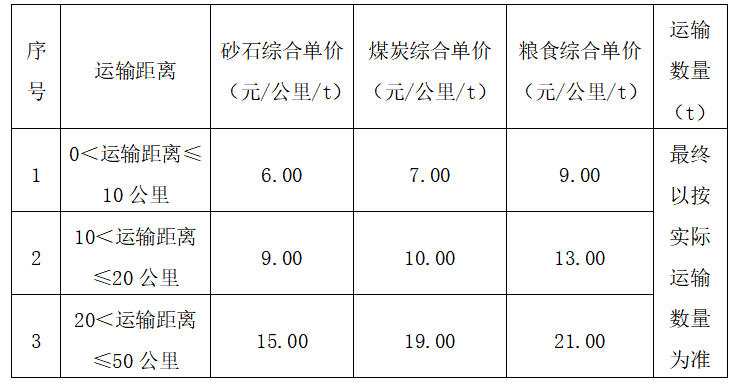 5.運輸要求:由于本項目臨時性、應急性發(fā)貨情況較多,出租單位接到裝車通知后,兩小時之內(nèi)必須到達裝車地點,承運的每批貨物必須專車運送,規(guī)定時間內(nèi)必須到達卸貨地點。