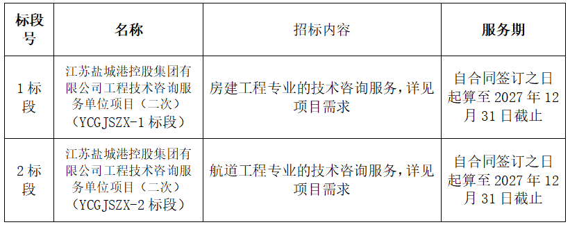 1、項(xiàng)目名稱(chēng):江蘇鹽城港控股集團(tuán)有限公司工程技術(shù)咨詢(xún)服務(wù)單位項(xiàng)目(二次)