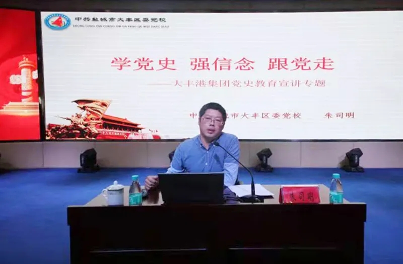 6月5日上午,大豐港區開展“學黨史、強信念、跟黨走”黨史宣講活動。大豐港區黨委副書記、董事、總經理繆存美,大豐港區領導班子全體、港區機關全體和各子公司中層副職以上干部參加活動。