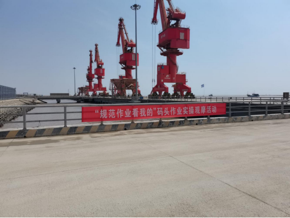 為加強碼頭作業現場的安全生產規范化管理,進一步提升安全生產作業以及標準化隊伍建設水平,4月14日上午,射陽港區在碼頭現場開展“規范作業看我的”觀摩活動,市國資委副主任馬如超出席,鹽城港集團安全環保部、生產經營技術部相關負責同志參加。