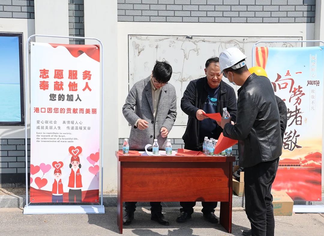 ? ? 為大力弘揚五四精神,5月1日上午,濱海港區開展“港口因您的貢獻而美麗”主題活動,組織青年志愿者服務隊慰問節日期間堅守在生產崗位的一線員工,向勞動者致敬。?