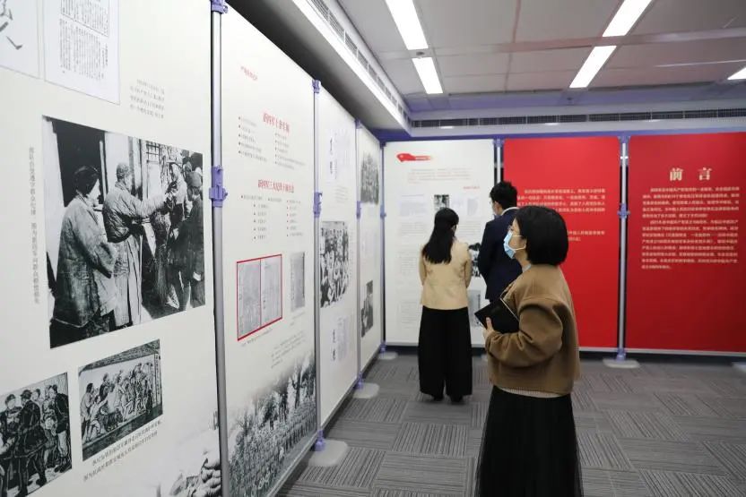 11月15日,《只要跟黨走一定能勝利——慶祝中國共產黨成立100周年新四軍革命文物專題展》活動在集團開幕。集團黨委委員、紀委書記周旭東,新四軍紀念館副館長周志明,集團黨委委員、董事、副總經理丁安廣等參加。