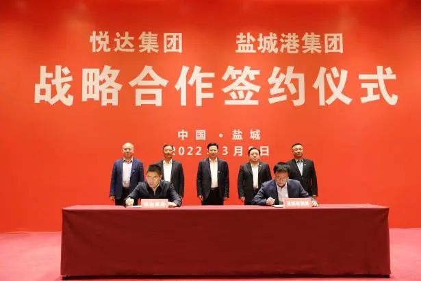 3月8日,悅達集團與鹽城港集團戰略合作框架協議簽約儀式在鹽舉行。悅達集團黨委書記、董事長張乃文,集團黨委書記、董事長、總經理周正雄,悅達集團黨委副書記楊玉晴,集團黨委委員、紀委書記周旭東,集團黨委委員、董事、副總經理丁安廣出席活動并鑒簽。悅達集團黨委委員、常務副總經理徐兆軍,集團黨委委員、董事、副總經理夏立新代表合作雙方上臺簽約。