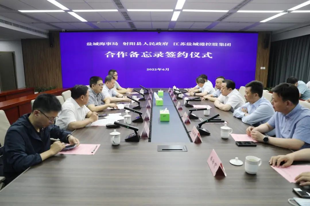 6月9日,鹽城海事局、射陽縣人民政府、鹽城港控股集團合作備忘錄簽約儀式在我集團舉行。市口岸辦副主任、市商務局黨委委員陳國亮,鹽城海事局局長程欣,集團黨委書記、董事長、總經理周正雄,射陽縣委常委、常務副縣長凌曉東,射陽縣副縣長陳劍峰,市口岸辦副主任、市商務局黨委委員、二級調研員韓玉軍,鹽城海事局副局長劉東,集團黨委委員、紀委書記周旭東,集團總經理助理孫永峰等參加。