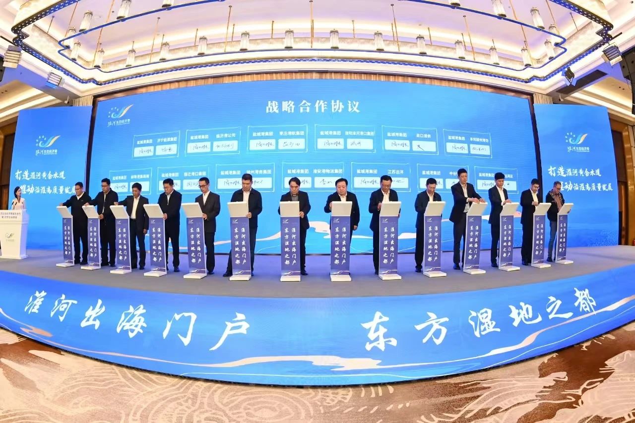 會(huì)上,與會(huì)人員觀看了淮河生態(tài)經(jīng)濟(jì)帶協(xié)同發(fā)展成果專題片,聽取了淮河生態(tài)經(jīng)濟(jì)帶城市合作工作推進(jìn)情況、淮河生態(tài)經(jīng)濟(jì)帶市際合作協(xié)議及重點(diǎn)合作事項(xiàng)。交通運(yùn)輸部規(guī)劃研究院專家圍繞“淮河水運(yùn)啟新程 航運(yùn)藍(lán)圖展未來”作主旨演講。29個(gè)成員市(縣)負(fù)責(zé)同志共同簽署了《淮河生態(tài)經(jīng)濟(jì)帶生態(tài)環(huán)境保護(hù)市際合作協(xié)議》《淮河生態(tài)經(jīng)濟(jì)帶水運(yùn)高質(zhì)量發(fā)展市際合作協(xié)議》《淮河生態(tài)經(jīng)濟(jì)帶綠色低碳發(fā)展市際合作協(xié)議》,淮河沿線港航、物流企業(yè)等單位與鹽城港集團(tuán)簽署了戰(zhàn)略合作協(xié)議。沿淮成員城市(縣)長作交流發(fā)言。淮河生態(tài)經(jīng)濟(jì)帶城市合作第六次市長會(huì)商會(huì)承辦城市安徽省亳州市向沿淮市(縣)發(fā)出盛情邀請(qǐng)。