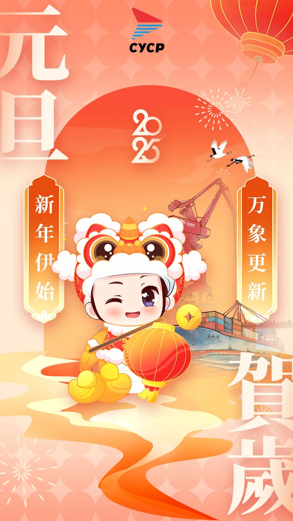 日邁月征,朝暮輪轉。值此 2025 年新歲序開之際,鹽城港集團謹向每一位堅守奉獻的員工、心系港口發展的退休老同志及家屬,向長期支持我們的各級領導、兄弟單位同仁和各界朋友,致以最誠摯的新年祝福和崇高敬意!