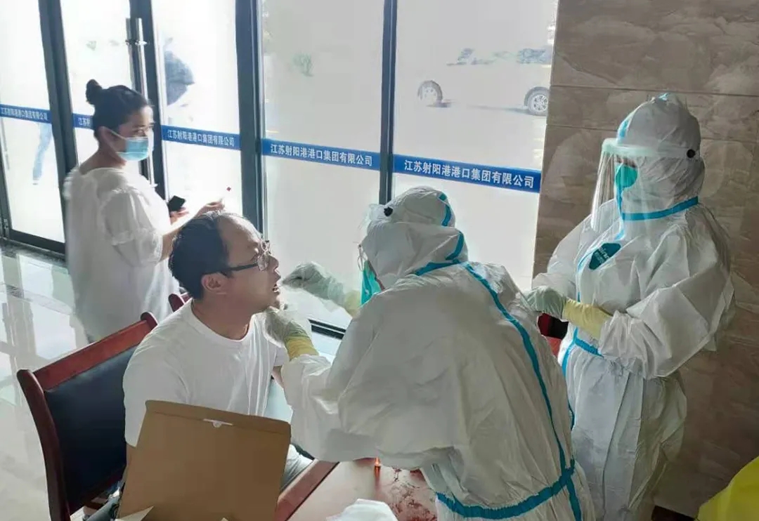 上午8時,射陽縣疾病預防控制中心醫務人員就已經準備就緒,穿上防護服,戴好護目鏡、口罩、手套,在射陽港區聯檢樓核酸檢測點開始為港區員工進行核酸檢測。現場人員有序排隊,全程佩戴口罩,依次進行檢測。截止中午12時,港區近300名員工全部完成核酸檢測。