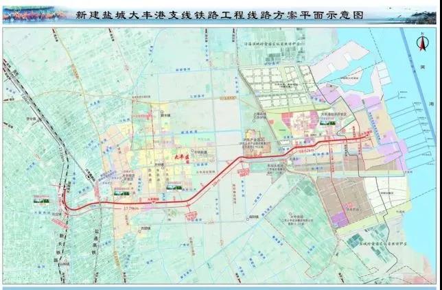 大豐港鐵路支線是國家發(fā)展改革委等五部門聯(lián)合印發(fā)的《關于加快推進鐵路專用線建設的指導意見》(發(fā)改基礎〔2019〕1445 號)文中明確的重點鐵路支線項目,鹽城市委市政府和省交通運輸廳、省鐵路集團計劃今年全線開工建設。