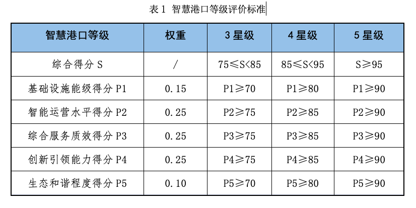 特別是近年來(lái),大數(shù)據(jù)、物聯(lián)網(wǎng)、5G、北斗、AI等高新技術(shù)蓬勃發(fā)展。以現(xiàn)代科技元素賦予傳統(tǒng)港口新力量,港口數(shù)字化、智能化、智慧化進(jìn)程加速推進(jìn)。不斷成熟的技術(shù)和拓展的需求,也給我國(guó)智慧港口建設(shè)按下了發(fā)展的“加速鍵”。在此背景下,建立科學(xué)權(quán)威的智慧港口等級(jí)評(píng)價(jià)指標(biāo)體系與方法,更好地引導(dǎo)我國(guó)智慧港口高質(zhì)量發(fā)展十分重要。