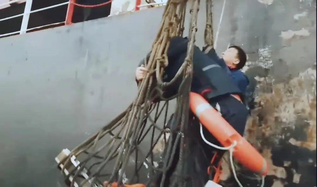 套好救生圈,拉緊救生繩,再配合船上吊機,一拖一拽之間成功將落水船員救上岸,整個救援過程僅僅用了5分鐘。據了解,落水船員目前生命體征正常,精神狀態良好。
