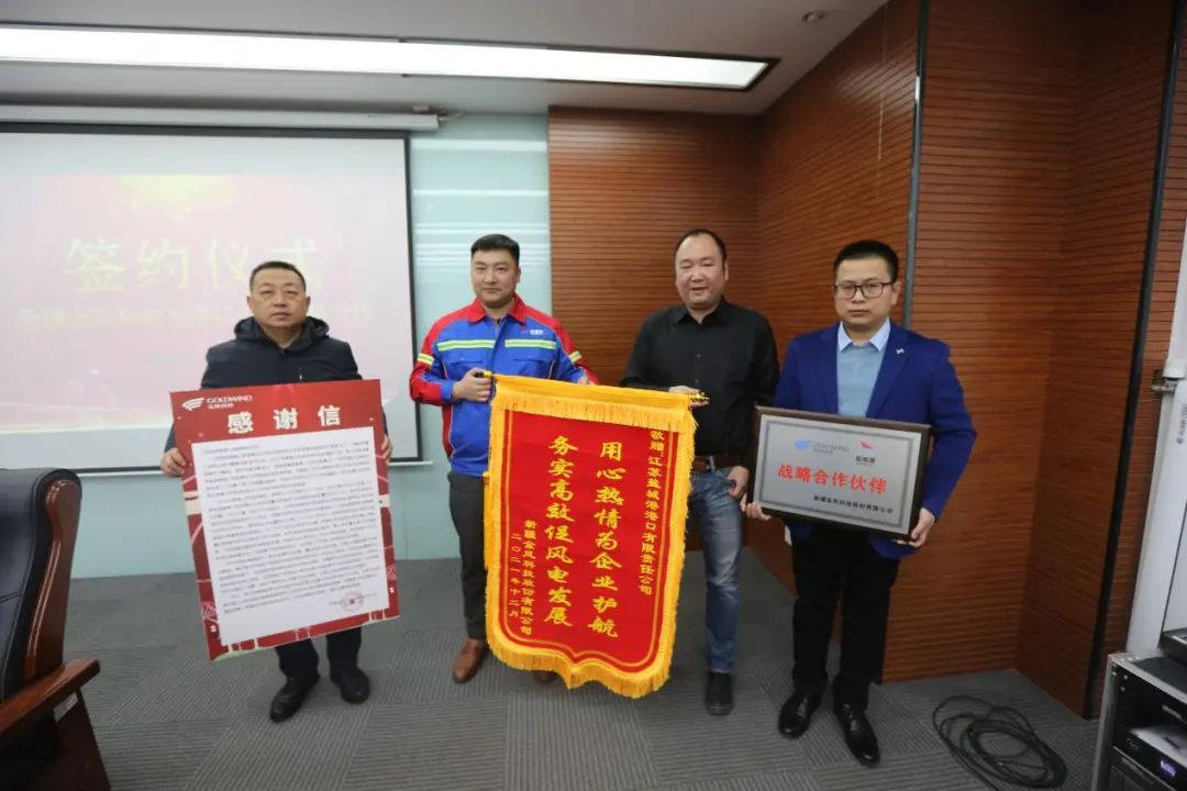 簽約前,金風(fēng)科技向港口公司贈(zèng)送錦旗和感謝信,對(duì)港口公司一如既往為企業(yè)發(fā)展提供高效、便捷的物流服務(wù)表示感謝。