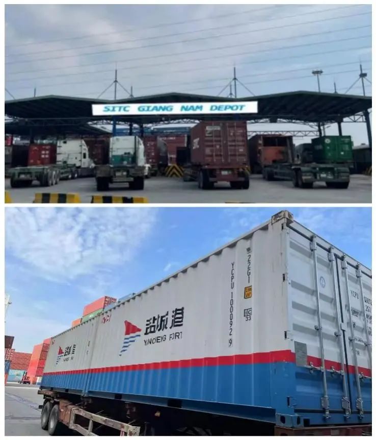 1月8日上午,經過為期一個月的行程,標有鹽城港logo的自備箱飄洋過海抵達越南胡志明港,標志著鹽城港自備箱正式走出國門,在全球流通。