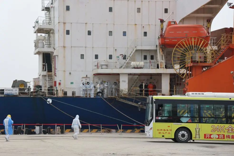 為確保中國船員換班工作“零等待”“零延時”,濱海港區第一時間啟動船員換班閉環管控工作流程和應急處置流程,與濱??h聯防聯控機制各成員單位協同配合,確保換班中國船員自國門至家門的全程閉環管理。讓船員感受到回到家的溫暖。