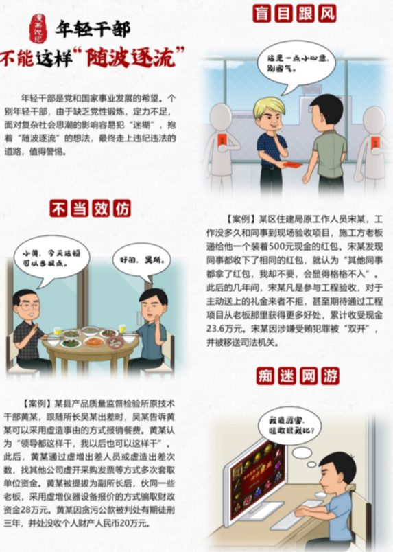 針對當(dāng)代年輕干部特點,大豐港區(qū)緊盯關(guān)鍵節(jié)點,創(chuàng)新教育方式方法,通過學(xué)習(xí)《漫畫說紀(jì):年輕干部不應(yīng)該這樣“隨波逐流”》,警示年輕干部必須抵擋住各種誘惑,牢守住紀(jì)法底線,要警字當(dāng)頭、手握戒尺、慎微慎獨,涵養(yǎng)“風(fēng)雨不動安如山”的政治品格,永葆“亂云飛渡仍從容”的政治定力,厚植“只留清氣滿乾坤”的高尚情懷,不越紀(jì)律底線、不踩紀(jì)律雷區(qū),做到心中有戒。