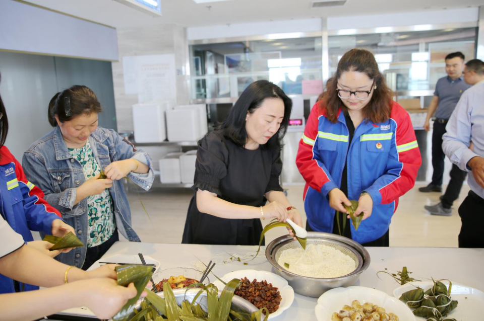 濃濃粽葉香,暖暖端午情。活動現場,干部職工們共聚一堂,其樂融融,互相分享包粽子的方法和經驗。卷粽葉、放米、捆扎,既分工又合作,體驗制作美食的快樂,忙得不亦樂乎。大家談笑風生,一齊動手,沒多大會兒功夫,粽子就在盆里堆成了小山。看著自己親手制作的杰作,現場更是歡笑不斷。誘人的粽香包裹著鹽城港特有的“一家人、在一起、手足情、過日子”的濃濃溫情,讓現場所有人都真真切切沉浸在端午佳節的味道里。