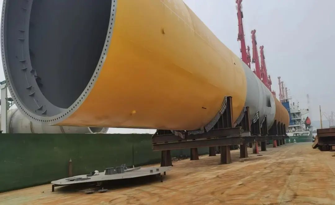這是鹽城港使用SPMT模塊車滾裝作業的單體最大鋼管樁