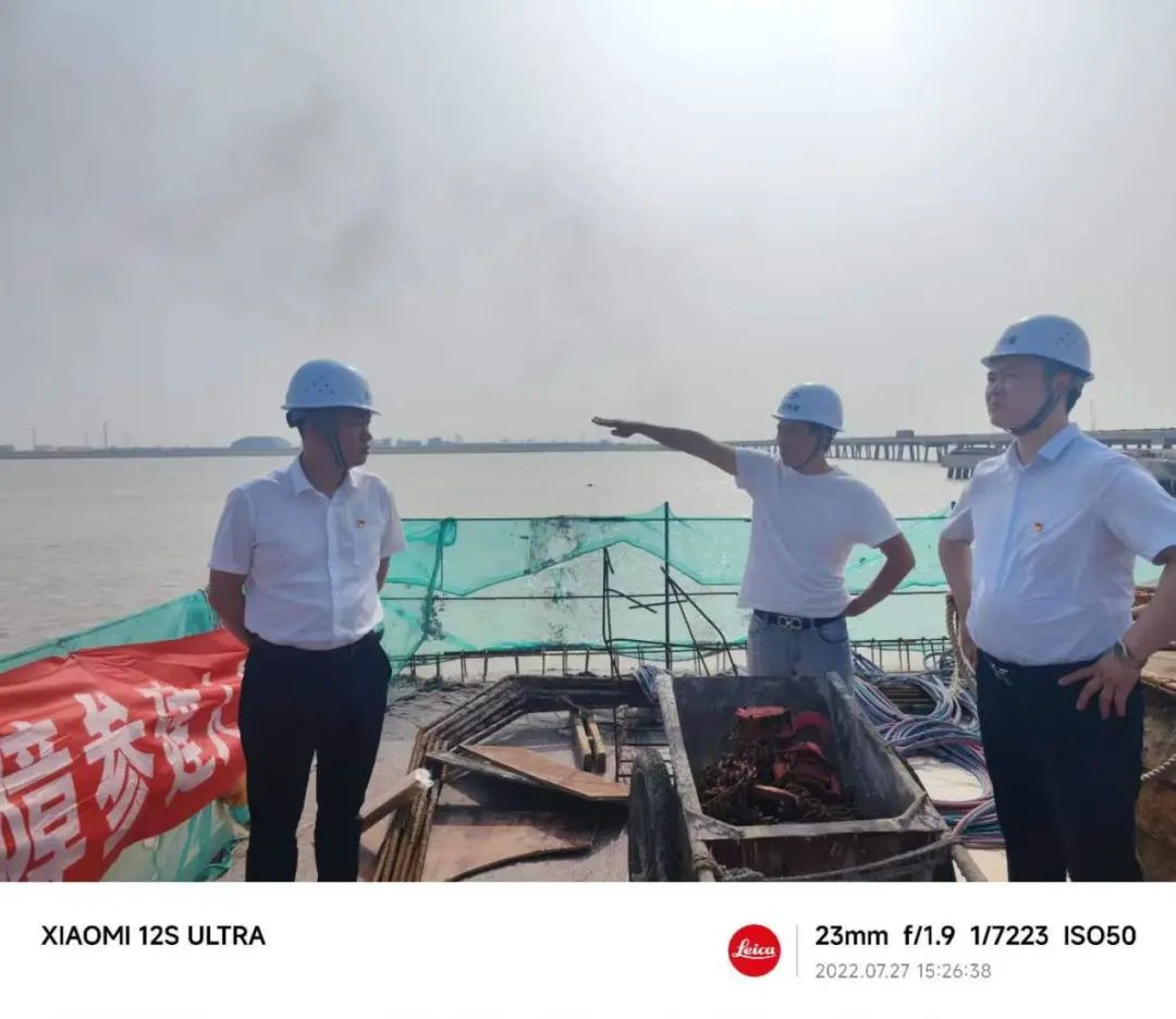 在深入基層一線現(xiàn)場,慰問組觀摩了濱海港區(qū)U型港池項目施工現(xiàn)場、射陽港區(qū)3.5萬噸航道疏浚工程及大豐港區(qū)工作船安保設施工程等項目現(xiàn)場,每到一處都仔細查閱施工時間記錄及防暑降溫物資發(fā)放登記表,確保每個工人都能合理安排施工作業(yè)時間,及時領取到防暑降溫物資。慰問組還檢查了現(xiàn)場施工環(huán)境、疫情防控及施工日志登記簿,詳細了解各項目施工及防疫工作實施情況。