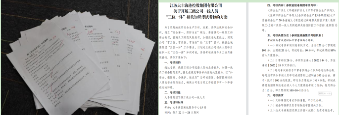 為進一步提高安全生產(chǎn)管理水平,更好地運用安全生產(chǎn)方針、政策、法律法規(guī)和安全知識,樹立“安全第一,預(yù)防為主”觀念。近日,鹽城港大豐港區(qū)組織石化板塊一線職工進行“三位一體一穩(wěn)”知識考試。
