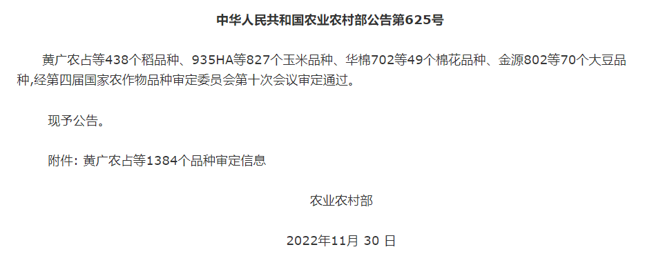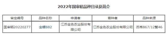 根據(jù)農(nóng)業(yè)農(nóng)村部公告第625號公布農(nóng)作物新品種審定名單,江蘇金色農(nóng)業(yè)股份有限公司自主選育的水稻新品種金粳882名列其中,同時(shí)也是該公司第三個(gè)自主選育的水稻新品種。