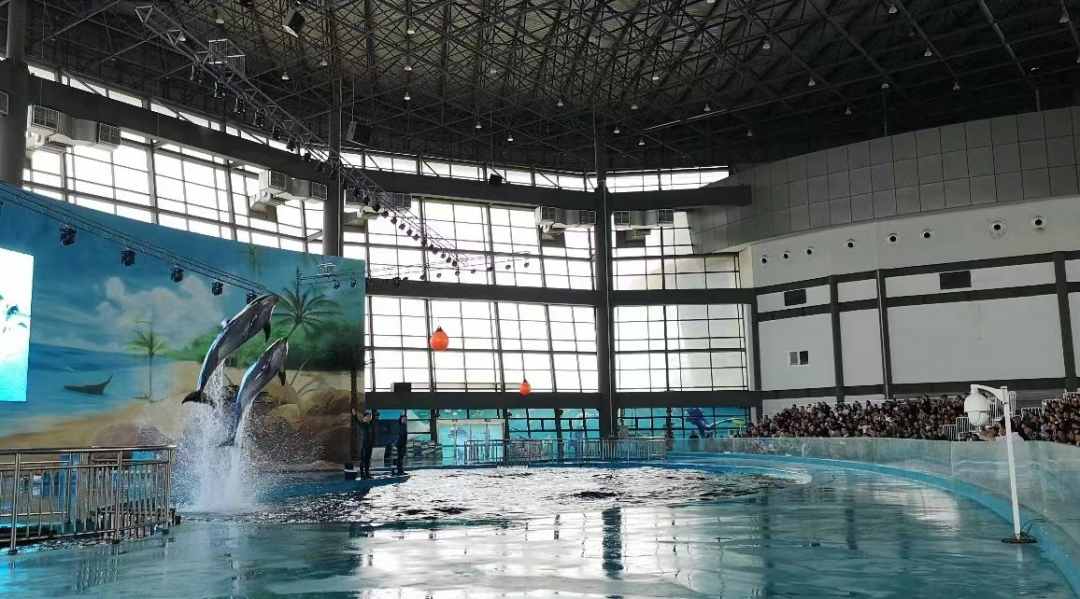 在鹽城港海洋世界景區,慕名而來的游客一大早就排起了長長的隊伍。海豚們用跳躍、遨游專程歡迎游客們的到來,伴隨著飼養員的指令,海豚們精準做出各種高難度表演,讓游客們流連忘返,不忍離開。
