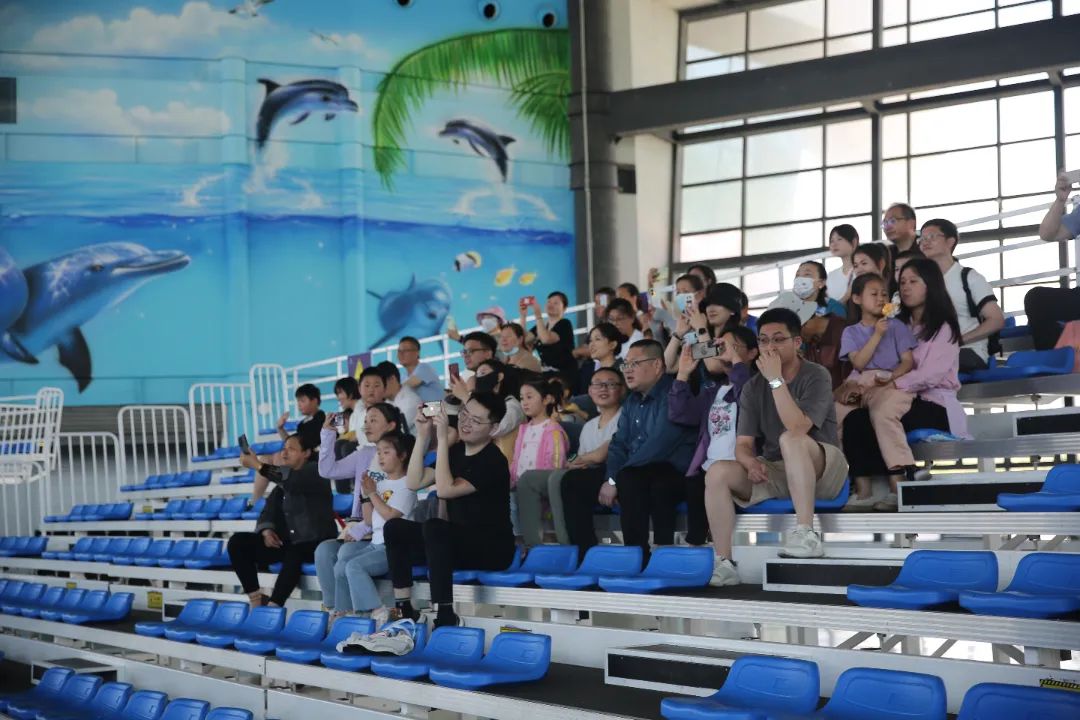 鹽城港大豐港區海洋世界是以海洋為主題的情景劇式互動體驗館,在這里,小朋友們觀看了海豚表演、了解了海洋知識。在柔和的音樂聲中,海豚開始表演節目,從水中一躍而上,濺起晶瑩的水花,而后如同身姿矯健的跳水運動員輕輕落入水中;它們在訓導員的指揮下,盡情地舞動著,展現著優美的舞姿。現場響起了一陣陣喝彩和掌聲,整個表演都充滿了靈性,觀眾們深深地被海豚的英姿所震撼。表演結束后,現場還有和海豚合影的機會,小朋友們大膽伸出雙手去撫摸它們,現場氣氛熱烈,小朋友們流連忘返。