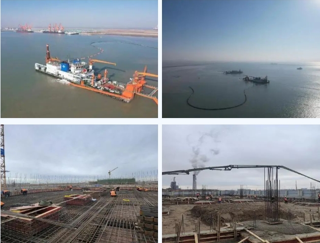 精雕細(xì)琢,匠心之作。項(xiàng)目條線人員爭(zhēng)分奪秒搶工期,推進(jìn)項(xiàng)目“加速跑”,為保障船舶通航能力與通航安全,條線人員緊鑼密鼓推進(jìn)5萬噸級(jí)航道港池維護(hù)疏浚工作,日前,絞吸式挖泥船“新海豚”號(hào)火力全開,每日疏浚量達(dá)6萬方,已完成工程總量的50%,預(yù)計(jì)春節(jié)前將全部完工。倉儲(chǔ)物流項(xiàng)目現(xiàn)場(chǎng)氣勢(shì)寬宏,各施工業(yè)面井然有序、一片繁忙。目前,生產(chǎn)樓已完成一、二層框架結(jié)構(gòu),正在進(jìn)行展廳結(jié)構(gòu)鋼筋綁扎和四層疊合板安裝,預(yù)計(jì)春節(jié)前能夠完成生產(chǎn)樓主體結(jié)構(gòu)封頂。