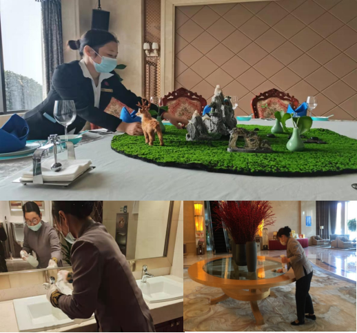 清潔衛生雖是平凡而普通的工作,但港泊半島酒店客房部PA班組卻在這個崗位上保持著飽滿的熱情,以“釘釘子”精神做出了自己的一番天地。作為酒店的“大總管”,酒店公共區域衛生是她們的主要工作。她們柔韌剛強,除塵工作上高下低;她們嚴謹細致,每一片綠葉,任何細小的角落都有她們溫柔的呵護;她們熟知各類石材類型、地毯款式、金屬材質,對清潔工作的高敏感度,練就了她們的一副火眼金睛。每當酒店的同事將衛生相關的問題反映給她們,她們總會積極地回應并火速分工,以最快的速度前去解決問題。哪里地毯臟了,哪里玻璃花了,哪里有衛生清潔問題……大家總會第一個想到她們。正是這樣的勤懇踏實的酒店人在平凡的崗位上,創造著不平凡,用魄力和責任,堅守著不可動搖的信念:“匠至心,人至勤!”