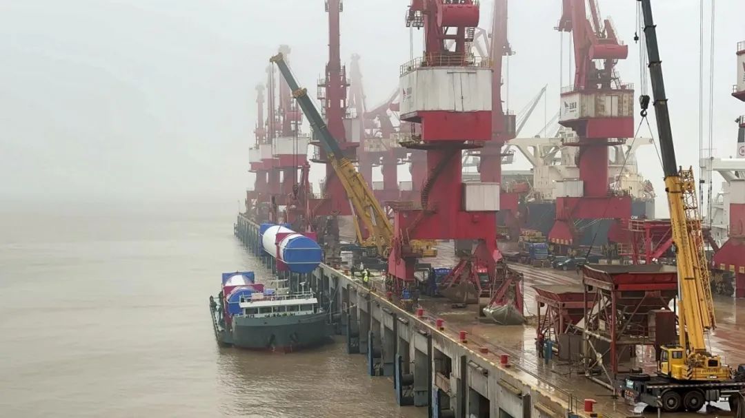 通用碼頭分公司針對該新型超大件重量大、直徑寬等作業特點,制定了一系列嚴謹的操作規程和安全措施,憑借優質服務和專業化作業能力,經過2小時的全力奮戰,順利完成了此次作業任務,優質高效的裝卸服務得到客戶高度肯定和一致好評。隨著去年12月首次試裝的圓滿完成,本次作業的順利結束不僅標志著該航次正式走量的開始,也為后續客戶合作打下良好基礎。