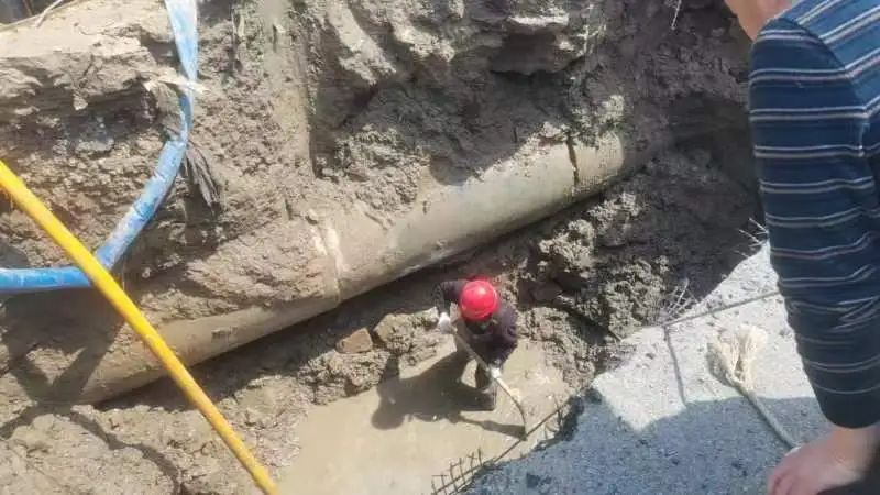 現(xiàn)場(chǎng),搶修人員根據(jù)破損情況有序開展管道修復(fù)工作。臨近中午,維修人員仍在泥水中忙碌著……經(jīng)過緊張搶修,順利恢復(fù)正常供水。
