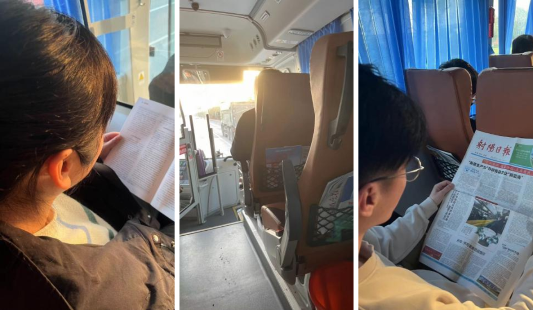 4月初號(hào)召大家?guī)?lái)家中閑置圖書(shū),與集團(tuán)報(bào)刊、訂閱報(bào)紙一起裝點(diǎn)班車,漸漸地班車上從每人各自捧著手機(jī)的沉默變成展開(kāi)報(bào)紙、翻閱書(shū)籍的安靜,小小巴士裝載著滿滿書(shū)香一路向前。