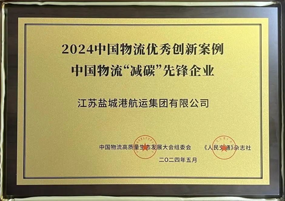 近日,由《人民交通》雜志社主辦的第二屆中國物流高質量生態發展大會在江蘇無錫舉行,鹽城港航運集團被評為“2024年中國物流‘減碳’先鋒企業”。