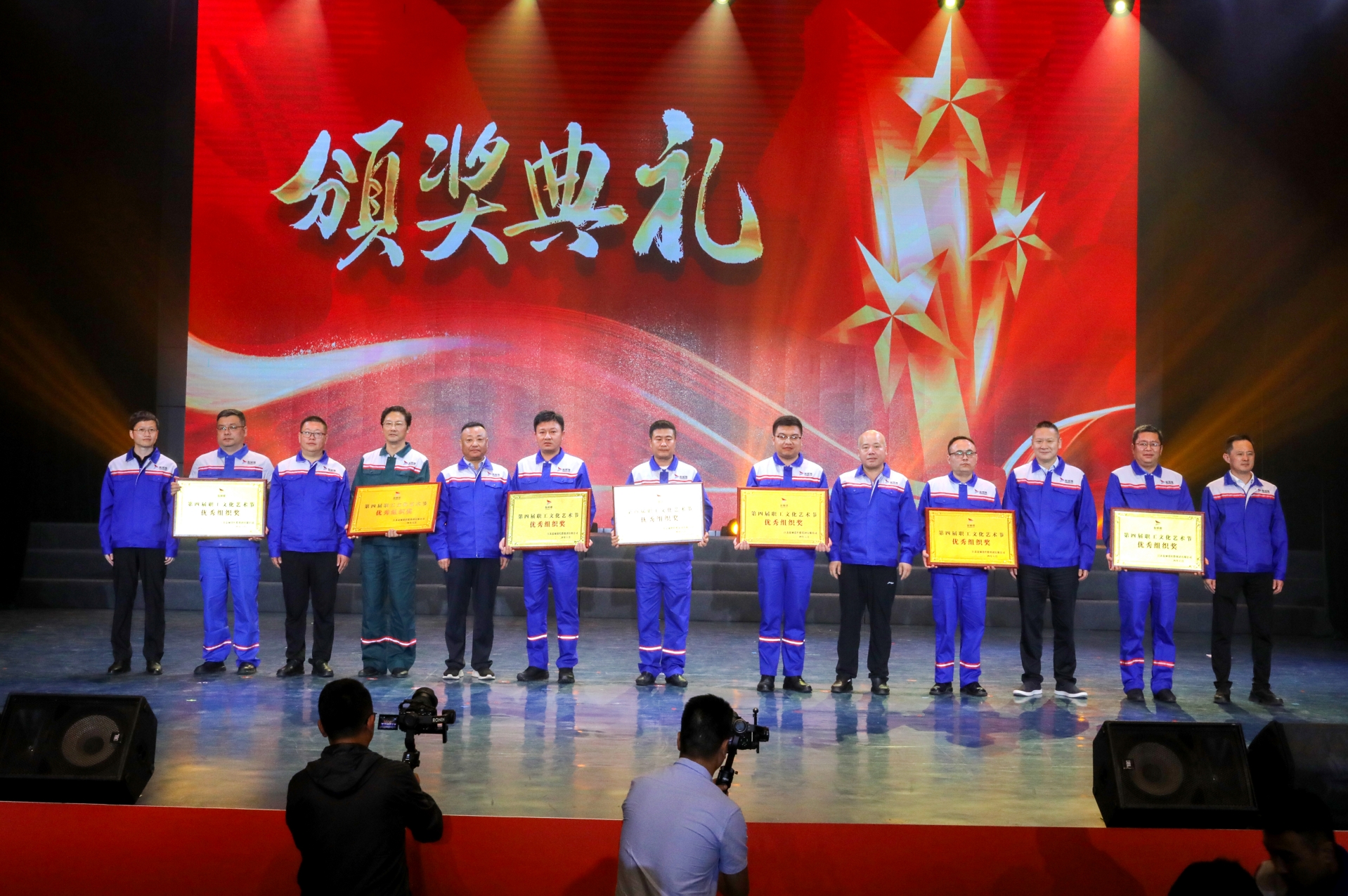 活動中,集團領導班子為第四屆職工運動會和文化藝術節獲獎單位代表進行了頒獎,現場還集中觀看了集團三年(2021-2023)“五新港口”建設工作匯報片和四周年工作匯報片。