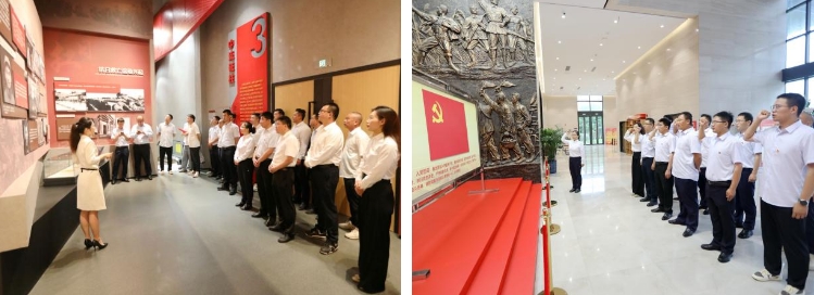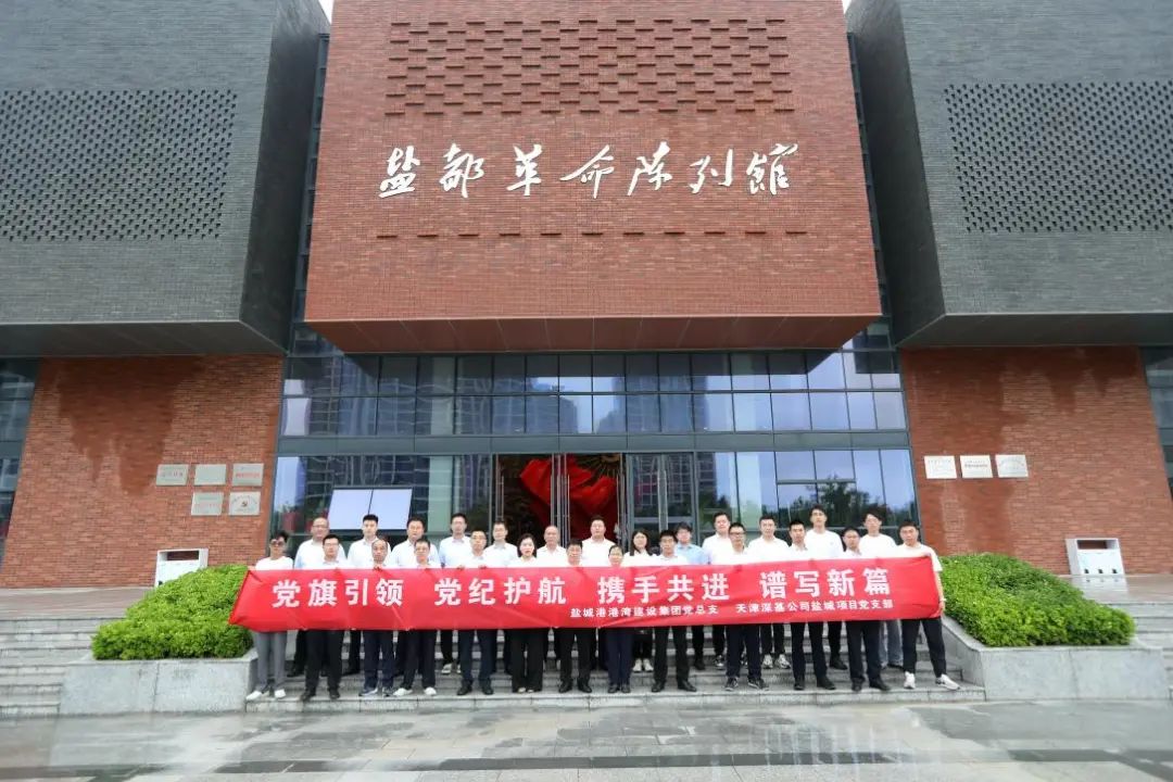 “我志愿加入中國共產(chǎn)黨,擁護黨的綱領(lǐng),遵守黨的章程,履行黨員義務(wù),執(zhí)行黨的決定,嚴守黨的紀律……”6月29日,港灣建設(shè)集團與天津深基公司鹽城項目黨支部的黨員共同佩戴黨徽、舉起右拳,在鹽都革命陳列館內(nèi)重溫入黨誓詞,用洪亮的聲音、激昂的語氣,表達了牢記初心使命,踐行為共產(chǎn)主義事業(yè)奮斗終身的決心和永葆共產(chǎn)黨員政治本色的信心。
