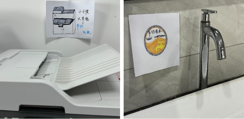 張貼宣傳節(jié)能減耗手繪畫。在公司內(nèi)部開展節(jié)能減耗主題繪畫活動,并在醒目位置張貼員工手繪畫,時刻提醒大家節(jié)約用水、用電、用紙等公共能源,旨在通過活動讓更多人參與到節(jié)能減耗環(huán)保行動中來。