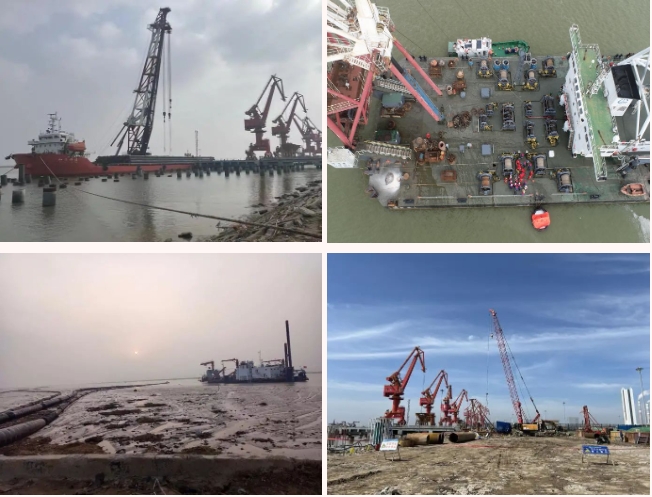 在射陽港區(qū)碼頭四期建設工地,工程機械往來穿梭,施工人員不懼“烤驗”,揮汗如雨,處處一派繁忙景象。為確保施工質量和安全有序可控,港區(qū)項目組認真組織工程監(jiān)理進行圖紙會審,從地基處理、管樁驗收、支架搭設、灌注樁施工等每道工序進行嚴格把控。隨著完成地基靜載試驗,陸域東、西兩側開挖排水溝,標志著項目整體施工進度又向前邁進一大步。