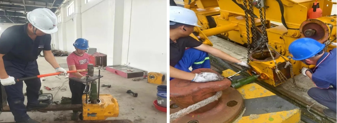 坐標(biāo)定位:建湖港區(qū)龍門吊行走減速箱維修現(xiàn)場(chǎng)