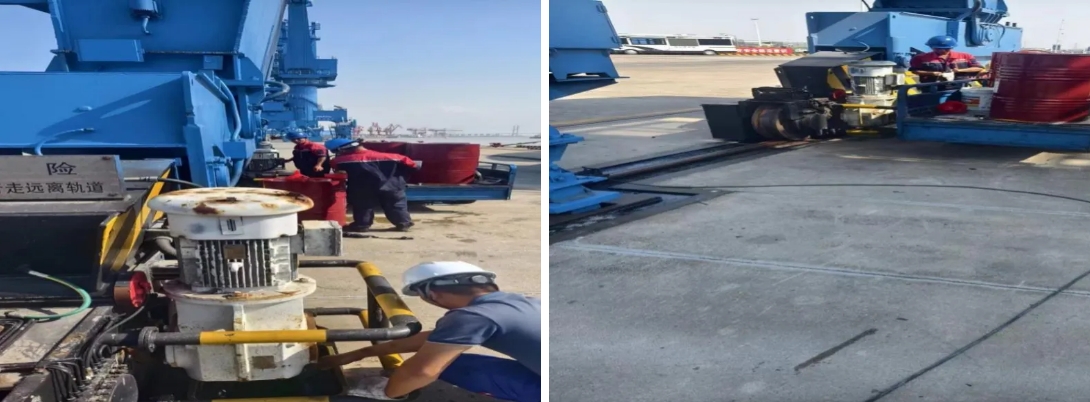 坐標(biāo)定位:響水港區(qū)龍門吊軌道減速箱維護(hù)現(xiàn)場(chǎng)
