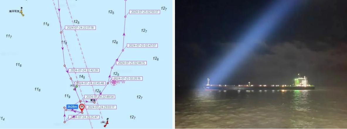7月24日,伊朗籍貨船“阿凡達(dá)”輪(英文船名:ARTAVAND),船長224.97米、船寬32.25米,吃水12.90米,滿載61909.617噸硫磺,在航行至大豐港區(qū)航道43號(hào)浮附近受困,船舶被迫拋錨,隨時(shí)有擱淺風(fēng)險(xiǎn),情況危急。