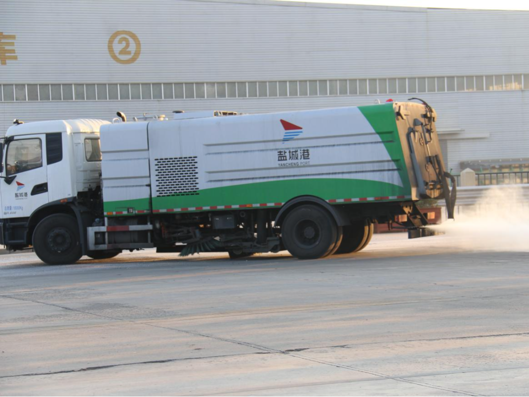 為進一步做好現(xiàn)場安全管理工作,對運輸車輛作業(yè)前進行安全檢查,要求司機嚴格按照港區(qū)限速要求行駛,尤其是磅房、轉(zhuǎn)彎處,必須提前減速,避免急剎。與此同時,為防止土石遺撒,最大程度減少對碼頭、道路及行駛環(huán)境的安全影響,采取“動態(tài)巡查+人工清掃+機械配合”的作業(yè)模式,對每臺運輸車輛進行嚴密苫蓋,在車輛運輸路線上布置清掃車,通過“人工掃帚+清掃車”清掃等組合方式,確保港區(qū)環(huán)境干凈整潔。