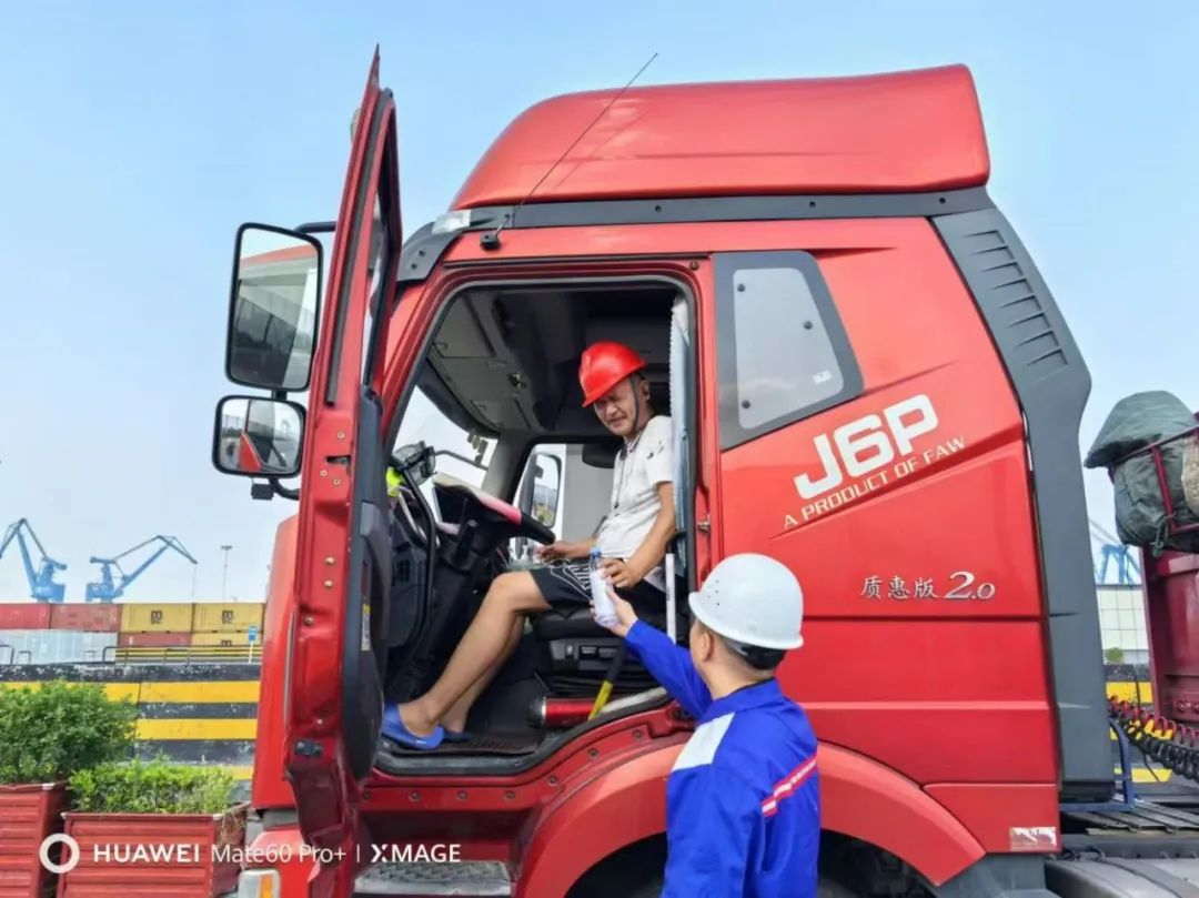 雖已入秋,碼頭高溫不減。一輛輛卡車排列在碼頭,靜靜等待土石裝卸運輸指令,卡車司機也一同經(jīng)歷著高溫的考驗。為確??ㄜ囁緳C們的安全與健康,保障運輸不斷檔,港區(qū)派專人為司機送去礦泉水等清涼物資,并叮囑他們行車前要仔細檢查車況,注意駕駛安全,預防高溫中暑和各類安全事故發(fā)生。貨車司機們紛紛表示,這樣的關(guān)懷讓他們感受到了絲絲涼意和滿滿溫情。