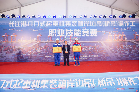 2023年,丁浩明作為技術指導,帶隊參加了首屆長江港口門式起重機集裝箱岸邊吊(橋吊)操作工職業技能競賽,他刻苦鉆研,對行走、穩關、著箱、閉鎖、升降、嵌箱、定位等橋吊操作基本步驟進行反復研究,自創了一套“以靜制動”吊裝操作法,在比賽中和團隊成員們周密配合、團結拼搏,榮獲團體一等獎和優秀組織獎,在長江沿線6省市12支港口代表隊中充分展現出“敢首創”的工作態度和有作為的專業能力。
