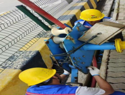 自動化軌道吊電纜轉(zhuǎn)盤電纜導(dǎo)向滑輪改造現(xiàn)場