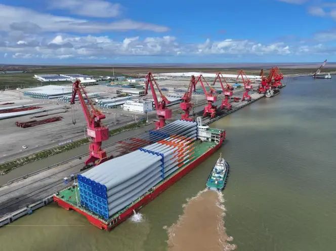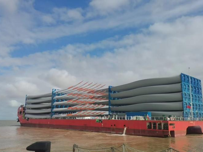 在新時代“鹽城港鐵軍淮海戰(zhàn)役”市場開拓大會戰(zhàn)期間,忽聞“遠(yuǎn)景能源印度項目”有成套葉片出口計劃,鹽城港射陽港區(qū)風(fēng)電公司攬貨組在得知此消息后,立即奔赴遠(yuǎn)景能源物流部、船代、船東、貨代等單位,登門宣傳射陽港口岸開放情況,最終達(dá)成合作。港區(qū)也在突破“外貿(mào)風(fēng)電”新貨種的同時,實現(xiàn)了“單船作業(yè)風(fēng)電葉片數(shù)量最多”“作業(yè)效率時間最短”兩項之最。截至當(dāng)前,實現(xiàn)外貿(mào)風(fēng)電吞吐量12.15萬噸。