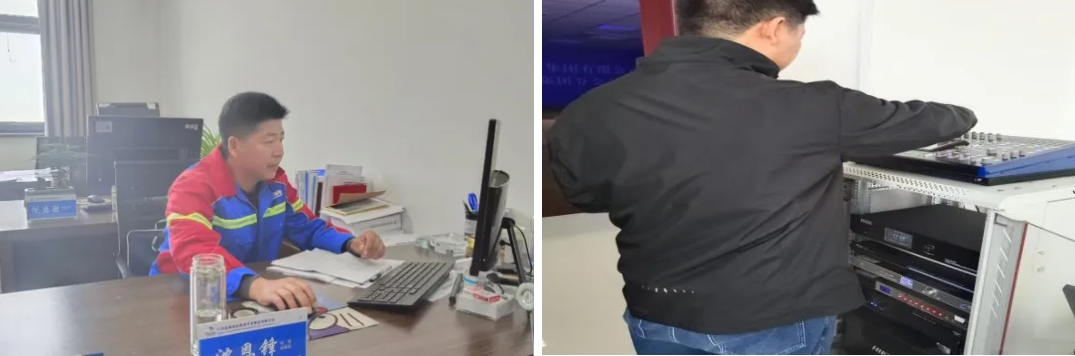 每當會議之時,他便主動地來到音響和視頻設備旁。憑借著特有的專業技能,認真檢查音響設備的聲況,調節音質,對焦畫面,掌控好音響、視頻幕后的視覺與聽覺。確保現場音響設備能夠正常高效地運作,為及時傳達集團黨委的各項決策部署奠定了扎實的基礎。