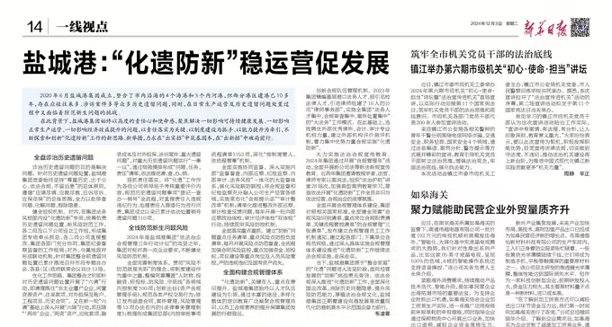 2024年是鹽城港集團“依法治企合規管理三年行動計劃”的攻堅之年,集團對標對表一流企業要求,不斷健全風險防范機制。