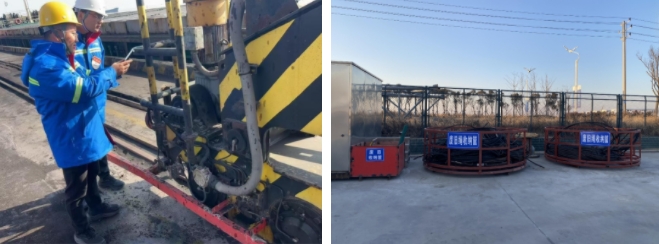 為保證生產作業正常運行,各生產班組近期將防凍工作納入日常管理,重點關注與冬季運行相關的水路、空調、電機等設備,給易受凍的戶外設施、管道、閥門等裸露部件“量體裁衣”,落實好各類防凍措施,杜絕“跑冒滴漏”,形成密集的保溫網。同時對門機、場地機械設備進行防凍液冰點檢測,及時更換油品,確保設備正常運轉。