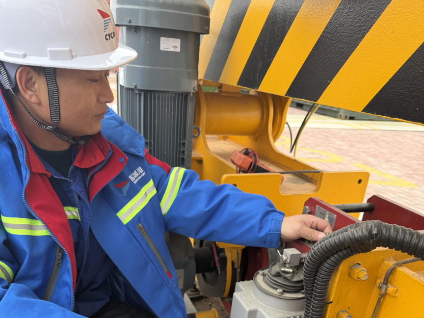 科技集團港機公司的技術運維部孫書林,舍小家為大家,寒風雖冷,但心是熱的。他巧用扳手等工具,細心檢查大車行走限位,及時排除故障,用實際行動默默守護節日期間的設備運轉,為港口運營增添動能。